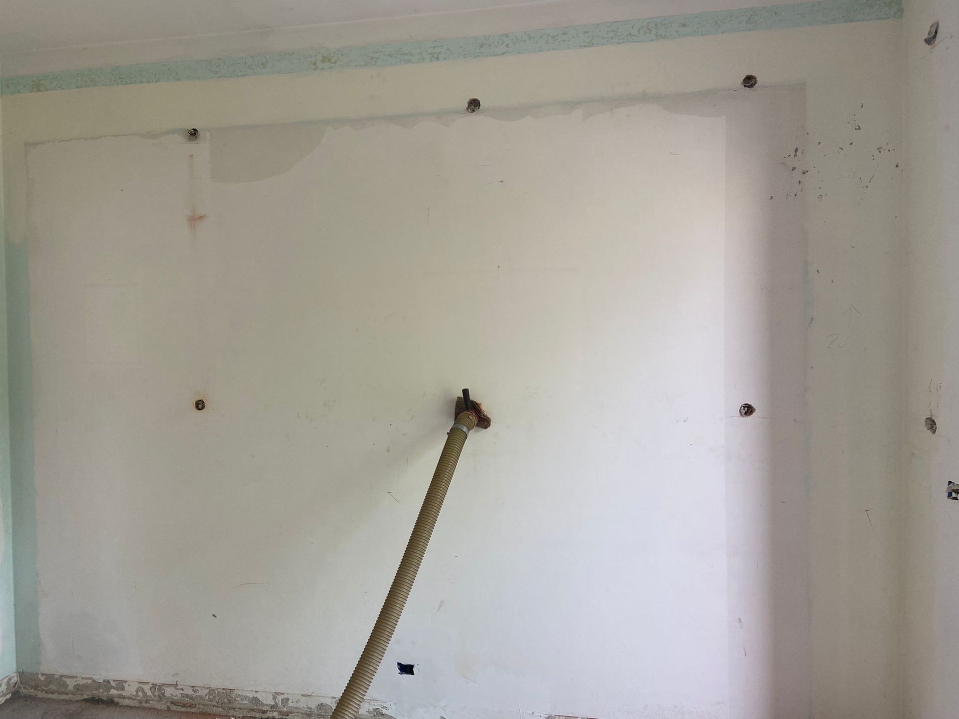 - Vengono effettuati dei fori ogni 1,20 metri. I fori più alti sono a 20 cm dal soffitto